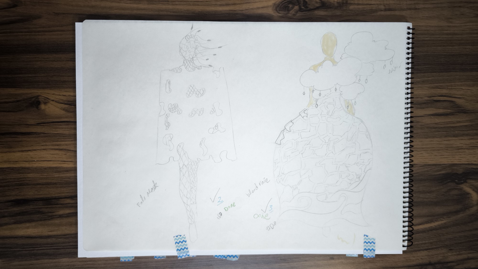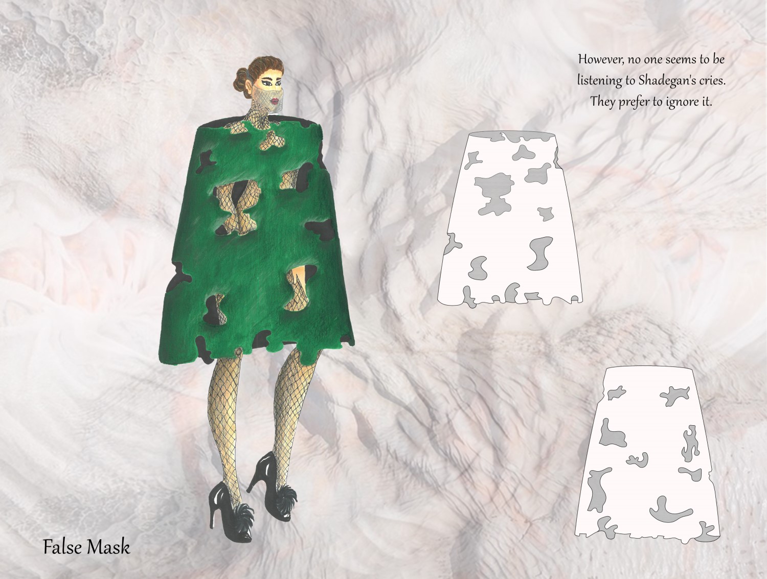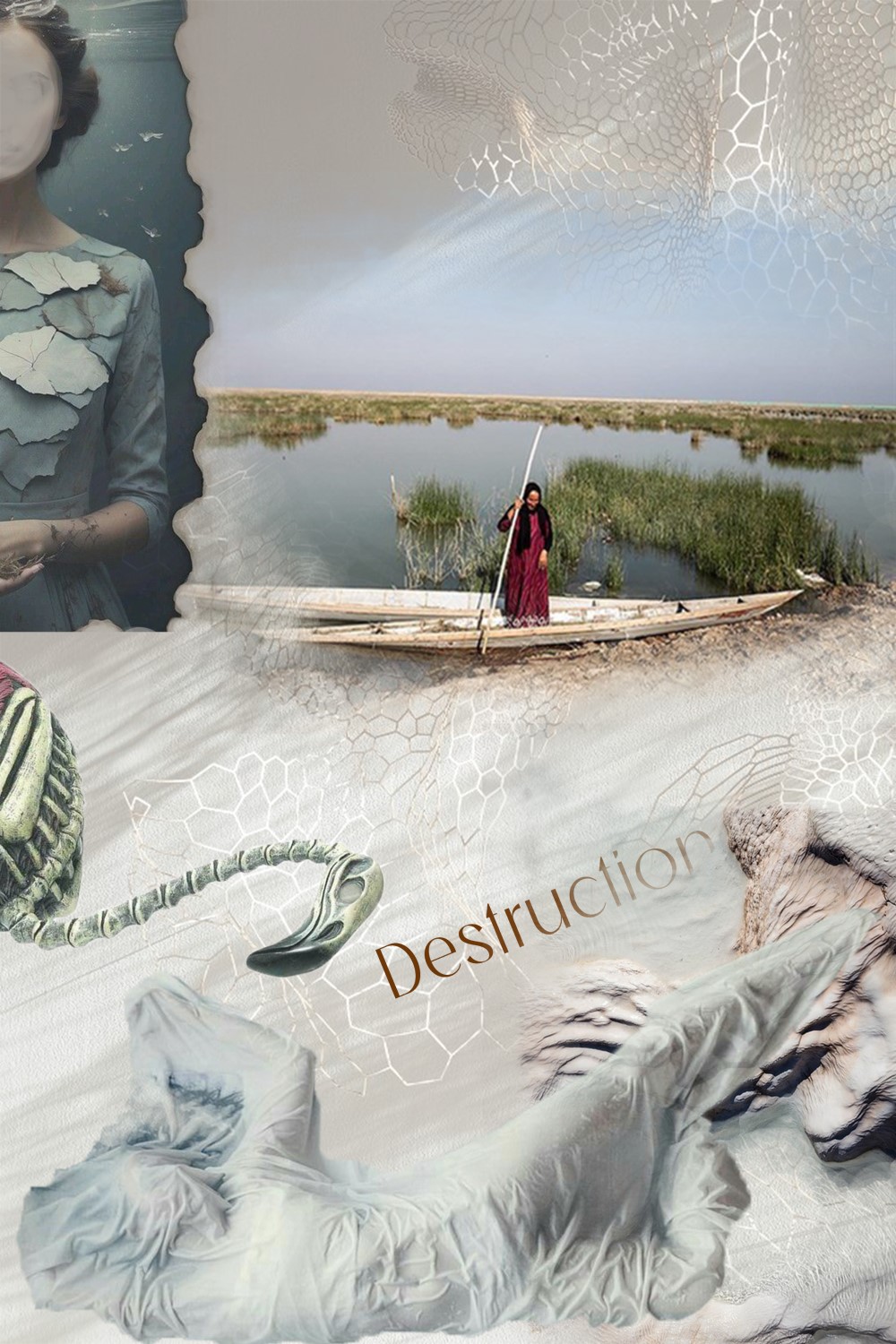 For this collection, I used avant-garde work style. It was the best style to freely depict pain and suffering. Captive birds, the thirst of the earth, the loss of vegetation and the red rain that shows the peak of pain and dehydration. This collection shows a small part of the earth’s environmental problems. So, an effort was made to produce this collection with minimal damage to the earth